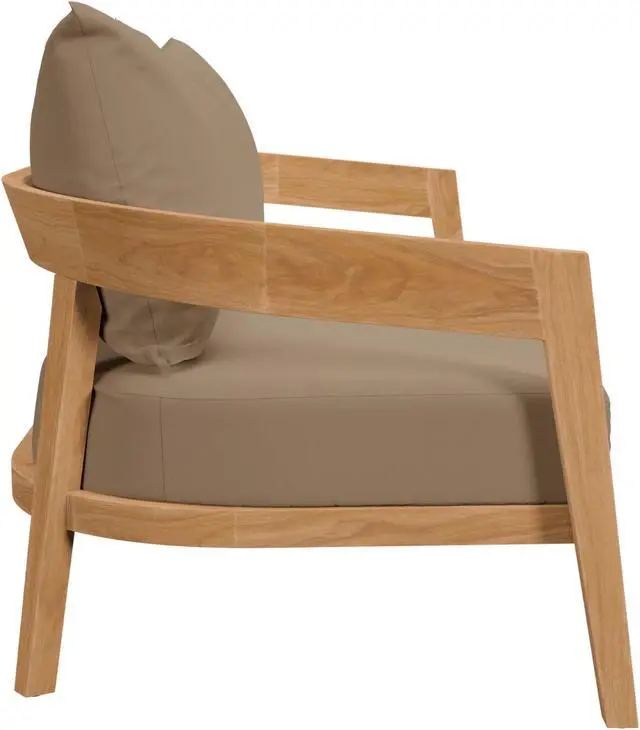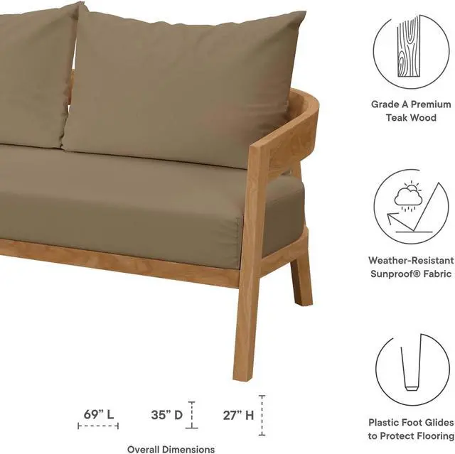 Embrace warm weather with the Brisbane Outdoor Patio Loveseat. Curved lines and a clean design create contemporary charm that makes a statement on your porch, in your backyard, or poolside. Perfect for al fresco entertaining or relaxing by the pool, the Brisbane Outdoor Patio Furniture Collection is crafted with durable Premium Grade A teak wood and features comfortable cushions covered in machine washable sun, stain, water, and fade resistant Sunproof fabric covers. Includes plastic foot glides. Loveseat Weight Capacity: 800 lbs. Set Includes: One - Brisbane Teak Wood Loveseat