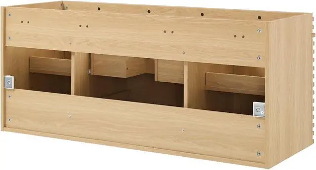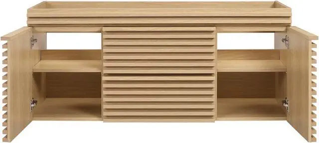 Tap into mid-century aesthetics with the Render Vanity Cabinet. The Render 48" Bathroom Vanity features a durable MDF and particleboard frame with a smooth laminate, ample storage space in two full-extension drawers, and space-saving wall-mount design with a drywall friendly mounting cleat. Clean lines and crisp design align for an edgy style designed to meet your needs. Boasting a mid-century modern style this vanity features a solid construction with a pleasing look and practical functionality. Assembly required. Sink basin and fixtures not included. Set Includes: One - Render 48" Wall-Mount Bathroom Vanity Cabinet