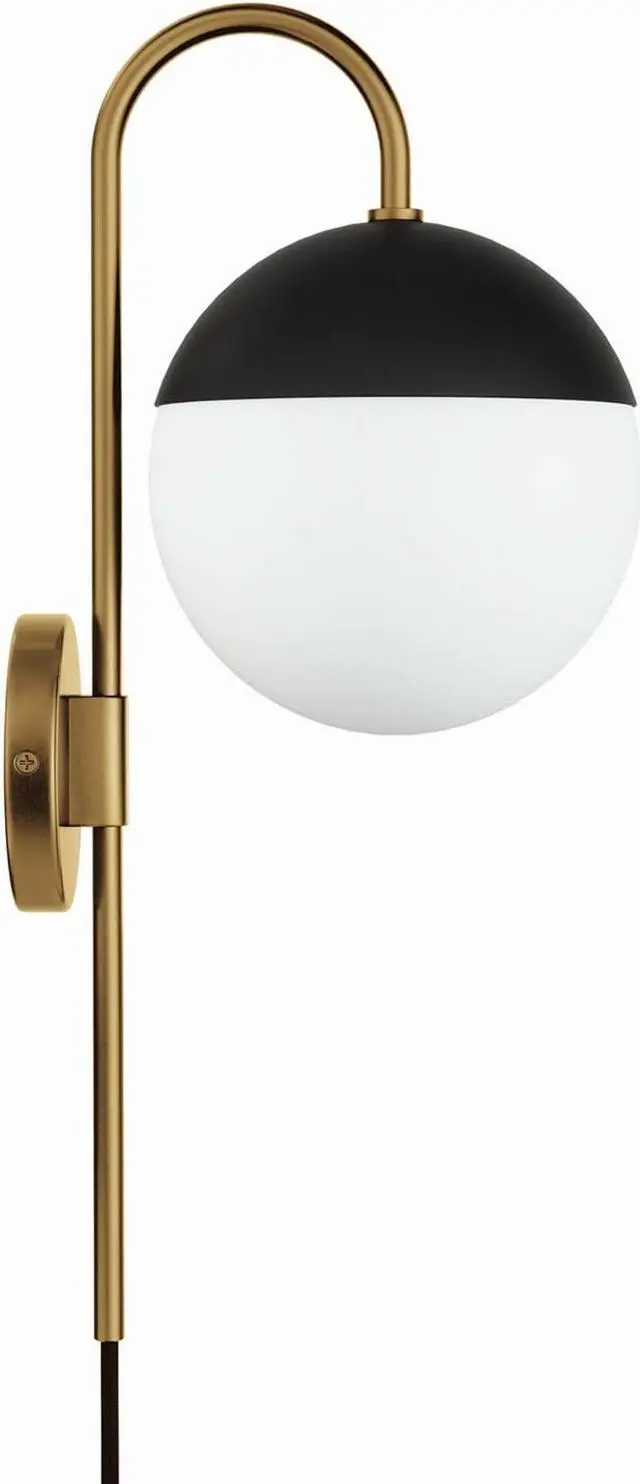 Cast a warm, ambient glow around your home or apartment with the Stellar Wall Sconce. Adding contemporary charm to a hallway, dining room, bedroom, office, entryway, or other living space, this spherical light fixture features a frosted glass shade that attaches to a matte black metal base. Affixed to the wall by a round backplate with a swooping metal arm, this wall light requires one E26 bulb 60W max or LED equivalent (not included) and plugs into an electrical socket. Damp rated for use in the bathroom., Set Includes : One - Stellar 1-Light Wall Sconce