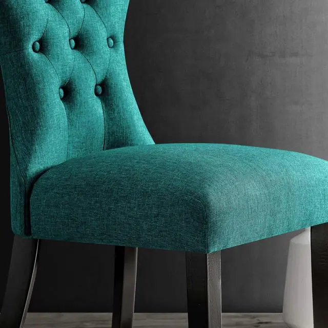 Graceful curves whisper elegance from every position. A softly tapered back and rounded hardwood legs lend distinguished support to this hourglass-shaped chair. Invite your way into the lap of luxury at every gathering., Set Includes : One - Silhouette Dining Side Chair