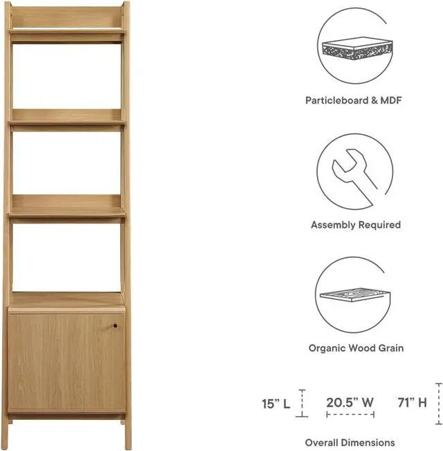 Stack your favorite reads and display home accessories with the Bixby 21" Bookshelf. Featuring a slim, tiered silhouette, this bookcase blends organic wood grain with the sleek lines of the shelves to create beautiful contrast. With plenty of room for storage and display, this bookshelf is complete with three spacious shelves and a concealed storage area on the bottom to keep living room, home office, or bedroom essentials out of sight. This display stand is crafted with particleboard and MDF for a sturdy construction that's built to last., Set Includes : One - Bixby 21" Bookshelf