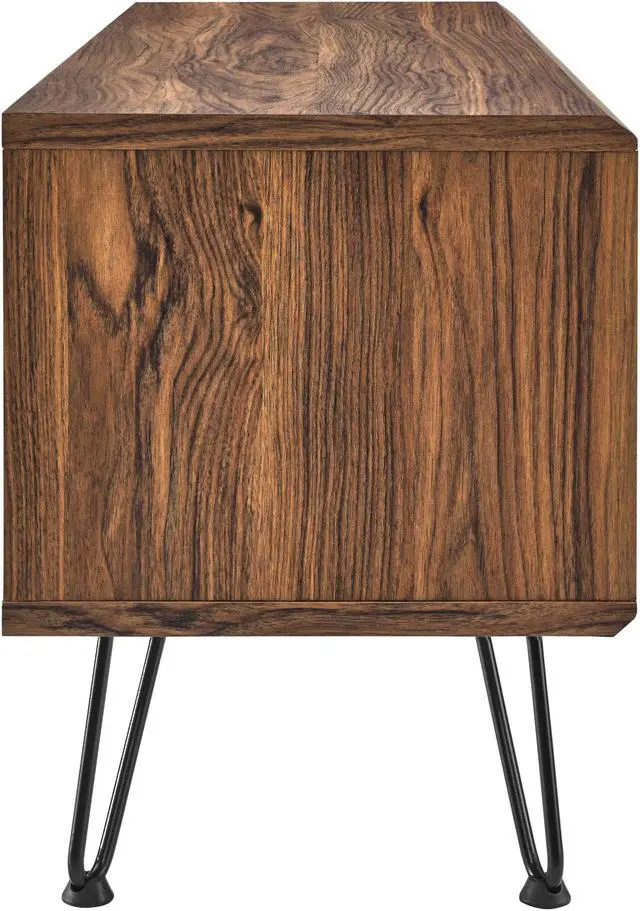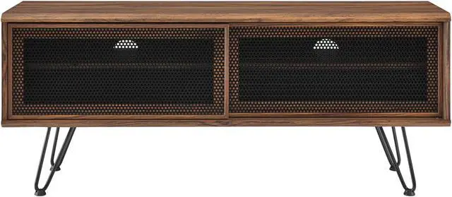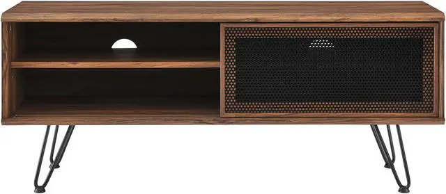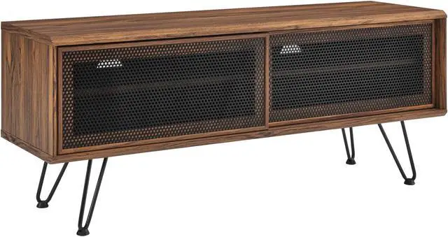 Urbanize your living space with the modern style of the Nomad 47" TV Stand. Featuring two sliding metal mesh doors, this entertainment center brings organic aesthetics and industrial design to the living room, bedroom, home office, or lounge area. This media stand is crafted with a honeycomb core and wood grain laminate. Resting on splayed hairpin legs with non-marking rubber pads, this media stand offers ample storage space for all your media essentials with spacious shelving while cable management holes keep visual space clean and allow for flow-through ventilation. This TV center accommodates TVs up to 52". Assembly required. Weight Capacity: 200 lbs., Set Includes : One - TV Stand