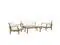 Solid teak wood constructionRichly textured wood grainingWater & UV Resistant CushionsMachine Washable CoversGrade A Premium TeakOverall Product Dimensions: 56"L x 110"W x 31.5"HArmchair Dimensions: 31.5"L x 32.5"W x 31.5"HSofa Dimensions: 32.5"L x 56.5"W x 31.5"HSeat Dimensions: 31"L x 26"W x 12"HCoffee Table Dimensions: 23.5"L x 47"W x 17.5"HBackrest Height: 20"HArmrest Height: 12"HFloor to underside of table: 14.5"HTable top thickness: 1"HProduct Materials: Teak wood, Natural fine sanded finish; cushion density is 24kg/m3