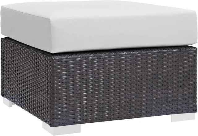 Gather stages of sensitivity with the Convene outdoor sectional series. Made with a synthetic rattan weave and a powder-coated aluminum frame, Convene is a versatile outdoor collection that shifts and combines according to the spontaneous needs of the moment. Outfitted with all-weather fabric cushions, leave a positive impression on friends and family while enhancing your patio, backyard, or poolside repast in this series of palpable distinction. This installment of the series is an Outdoor Patio Sectional Set.Set Includes:One - Convene Outdoor Patio ArmlessOne - Convene Outdoor Patio Coffee TableOne - Convene Outdoor Patio Fabric OttomanTwo - Convene Outdoor Patio Corner