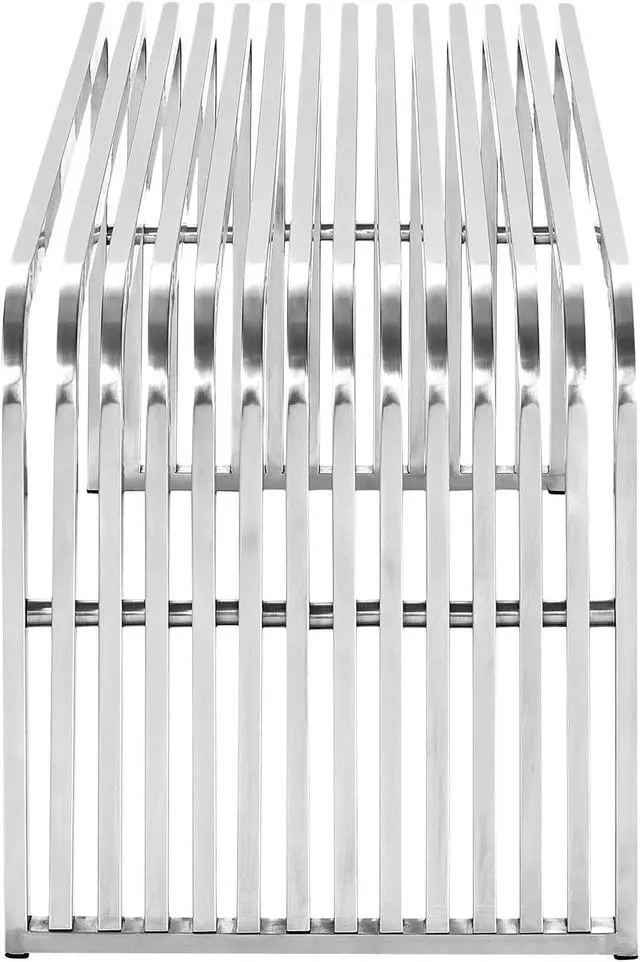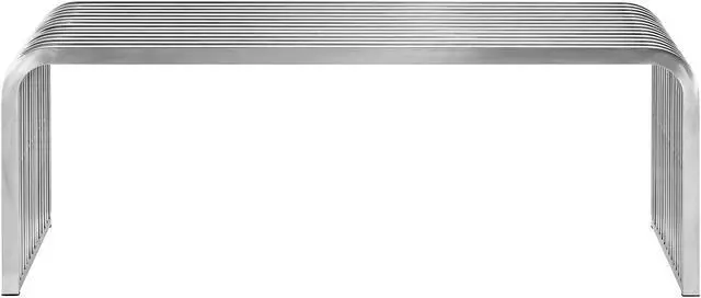 Expedite your dcor with the Pipe Bench. Intended to convey the fluidity of progress, Pipe is comprised of fourteen continuous polished steel tubes with a side beam for support. Not one of equivocating, Pipe is a decisively modern piece that works well in contemporary living rooms, bedrooms, lounge spaces, and hallway areas.Set Includes:1 - Pipe Bench