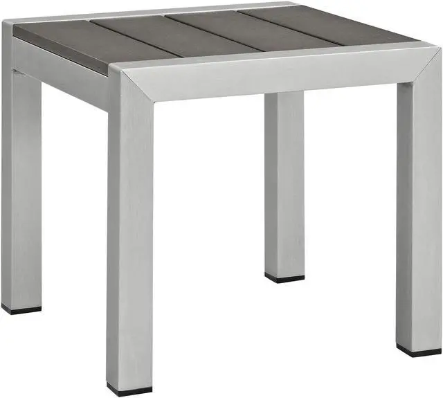 Modern Outdoor Patio CollectionAll-Weather Canvas CushionsAnodized Aluminum FrameNon-Marking Foot CapsMachine Washable CushionAssembly RequiredOverall Product Dimensions: 55"L x 111.5"W x 25"HOverall Side Table Dimensions: 15.5"L x 15.5"W x 14"HPlastic Wood Dimension: 12.5"L x 3.5"W x 1/2"HAluminum Tube: 1.5"L x 1"W x 1"HOverall Armchair Dimensions: 32"L x 27.5"W x 25"HSeat Dimensions: 27.5"L x 16.5"HArmrest Height: 25"HBackrest Dimensions: 7.5"HArmrest Dimensions: 27.5"L x 1"W x 8.5"HBase Dimensions: 27.5"L x 25"WOverall Loveseat Dimensions: 56.5"L x 27.5"W x 25"HSeat Dimensions: 27.5"L x 16.5"HArmrest Height: 25"HBackrest Dimensions: 7.5"HArmrest Dimensions: 27.5"L x 1"W x 8.5"HCushion Thickness: 5"HBase Dimensions: 27.5"L x 25"WOverall Coffee Table Dimensions: 23.5"L x 39.5"W x 17.5"HFloor to Underside of Table: 15"HBase Width: 17.5"WWidth of Legs: 17.5"WAluminum Tube: 22.5"L x 3.5"W x 1/2"HProduct Materials: Assembly required, Aluminum tube:9x2x0.2 cmSeat cushion:30kg/M3 density foam:63x70x13 cmBackrest cushion:63x35x9-13 cm100% polyester4pcs black PE foot pluganodized brushed aluminum frameWeimas fabric outer cover, gry plastic wood code g060