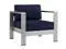 Enjoy your patio or backyard leisure time with the strong and durable Shore Outdoor Aluminum Collection. Made of anodized brushed aluminum frames and non-marking black plastic foot caps, Shore pieces come outfitted with resilient fabric canvas tested to last through all weather conditions. The Shore Outdoor Aluminum Collection complements casual gatherings with a chic look and ready versatility you can rely on.Set Includes:One - Shore Coffee TableOne - Shore LoveseatTwo - Shore ArmchairTwo - Shore Side Table