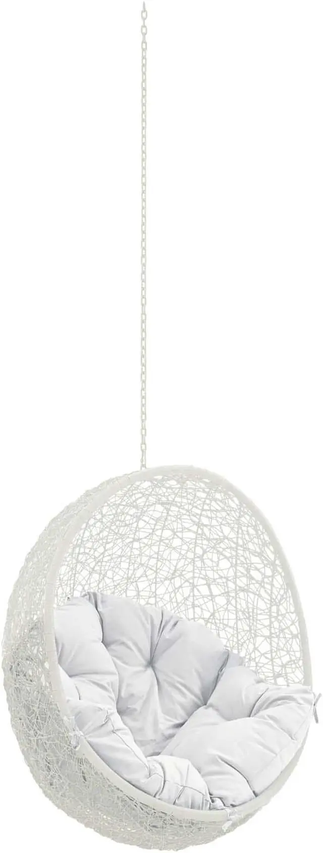 78.5 Adjustable Steel Hanging ChainSturdy Powder-Coated Steel FrameWashable Polyester CushionUV Resistant and All-Weather Luxurious Synthetic Rattan WeaveWeight Capacity: 265 PoundsAssembly RequiredOverall Product Dimensions: 28.5"L x 40"W x 125.5"HCushion Dimensions: 24"L x 24"W x 20"HChain Length: 78.5"LProduct Materials: PE round rattan, Weimas fabric outer cover ,Polyester fiber with nonwoven fabric inner cover, 100% polyester, , GRY and WHI powder coated steel frame, Chair Weight Capacity: 265lbs