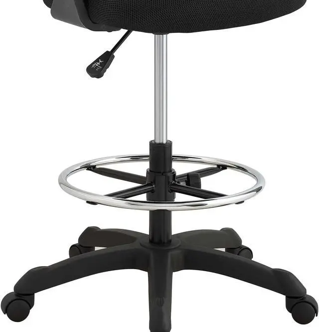 Energize your office decor with Thrive. This sturdy nylon frame drafting chair comes with a breathable mesh back which combines passive lumbar support and cooling comfort. Spiraling armrests imbue a creative vibe, while the densely padded mesh seat and adjustable foot ring keep you ergonomically supported. Complete with one-touch height adjustment, full 360-degree swivel, and five dual-wheel casters for natural movement of either carpeted or hardwood surfaces, Thrive is a drafting stool that stands to be at the forefront of your work endeavors.Set Includes:One - Thrive Mesh Drafting Chair