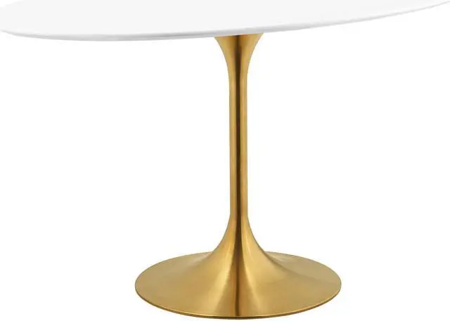 Reflecting a seamless organic shape and timeless form, the Lippa dining table has become a symbol of modernism for over the past 60 years. Before its release, homes were filled with clunky remnants of an industrial age long gone by. But in order to advance into the new world, homes first had to transition from the traditional square table, into a piece that connoted progress. The base and dimensions are true to the original specifications, while the tables circular white top and metal tapered base are carefully lacquered with a chip-resistant finish.Set Includes:One - Lippa 48" Oval Dining Table