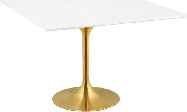Reflecting a seamless organic shape and timeless form, the Lippa dining table has become a symbol of modernism for over the past 60 years. Before its release, homes were filled with clunky remnants of an industrial age long gone by. But in order to advance into the new world, homes first had to transition from the traditional table, into a piece that connoted progress. The base and dimensions are true to the original specifications, while the tables square white top and metal tapered base are carefully lacquered with a chip-resistant finish.Set Includes:One - Lippa 47" Square Dining Table