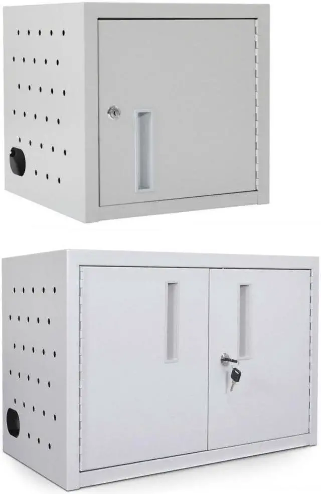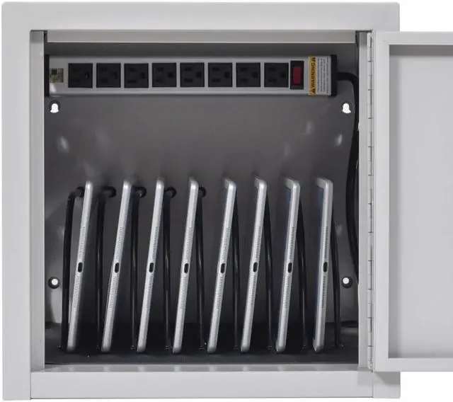 Luxor's bestselling wall/desk charging station, the LLTMW16-G, is the perfect fit for users who need their devices in one specific and easily accessible location. The fully assembled tablet charging station has a padded interior with rubber-coated dividers, which keeps tables safely in place to avoid any damage or scratching. For additional protection, two ventilated sides allow constant airflow to eliminate overheating, even when the front door is closed and locked for safe keeping. Whether your charging station is best suited resting on an office desk or mounted on the library wall, keep your workplace coordinated with this durable and discreet charging box. Features: perfect for Wall-Mounted applications or desk surface configurations capable of charging and securing up to 12 tablets (sold separately) measures 25 inch W x 13 inch D x 14.5 inch H ventilated on two sides allowing air to circulate freely through the unit rubber-coated dividers spaced 1 inch apart to keep equipment organized and protected inside is padded and measures 13 1/4 inch H x 11.5 inch D with divider dimensions of 6 inch H x 8 inch D includes 16-outlet 120V/15a electrical assembly to keep devices fully charged mounting hardware for drywall surfaces included unit comes fully assembled maximum weight capacity of 30 lbs. (evenly distributed).