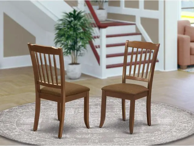 Set of 2 Chairs DAC-MAH-C Danbury vertical slatted back chairs with Linen Fabric Upholstered Seat in Mahogany finish