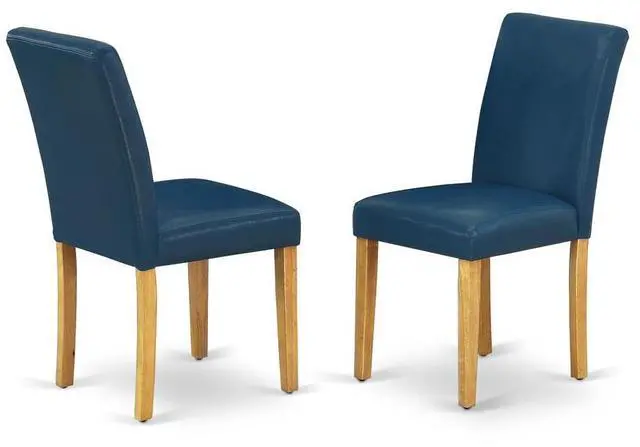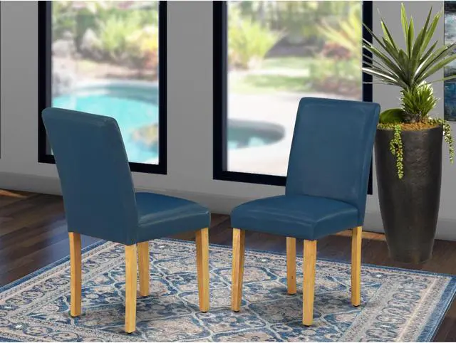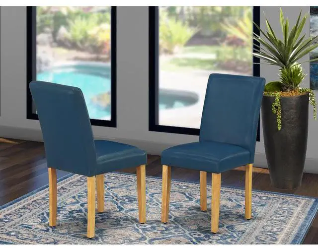 This simple but charming set of 2 Parsons chairs will add ambiance and style to your dining-room. Give your home a pop of chic style with this must-have Parsons chair. A contemporary twist on a classic design, this eye-catching design will liven up any look. The traditional parsons gives this chair a touch of familiar charm, while the Pu Leather-Oasis Color and clean-lined design elevate this chair with modern flair. Ready to give your dining room a new look? Just by switching out your chairs, you can effortlessly refresh your space. Try surrounding a sleek wood table in your dining room with six of these sleek chairs to craft a new aesthetic.Fabric: Pu LeatherCushion material: FoamFabric color: OasisLeg color: OakDimisions: Length 21; Width 17; Height 35