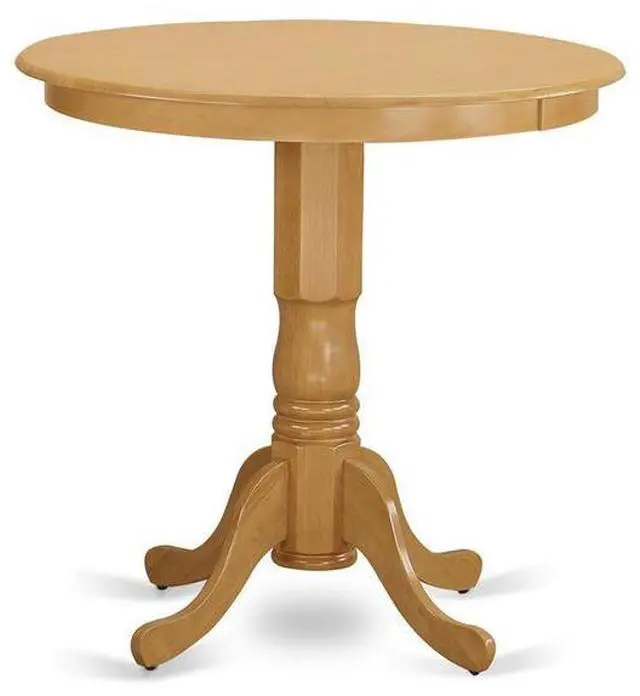 Classic round dining table offers a rich gorgeous Oak color to enrich any kind of living area or home's small space for any occasions. A thick curled ornate pedestal base provides strength and state-of-the-art impression to the round dining room tables. This valuable round kitchen table will bring the room together as it draws in with is glossy design.