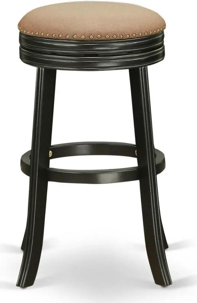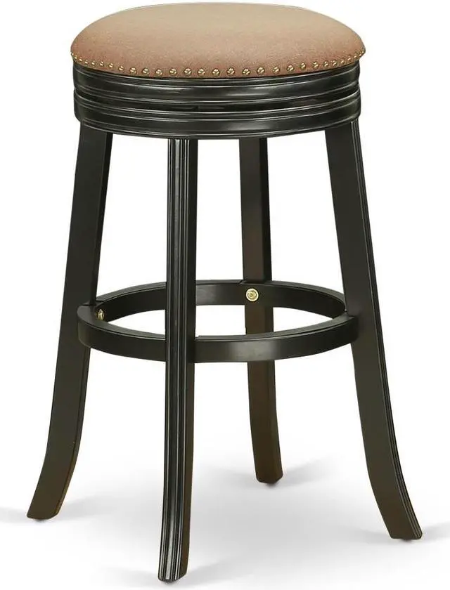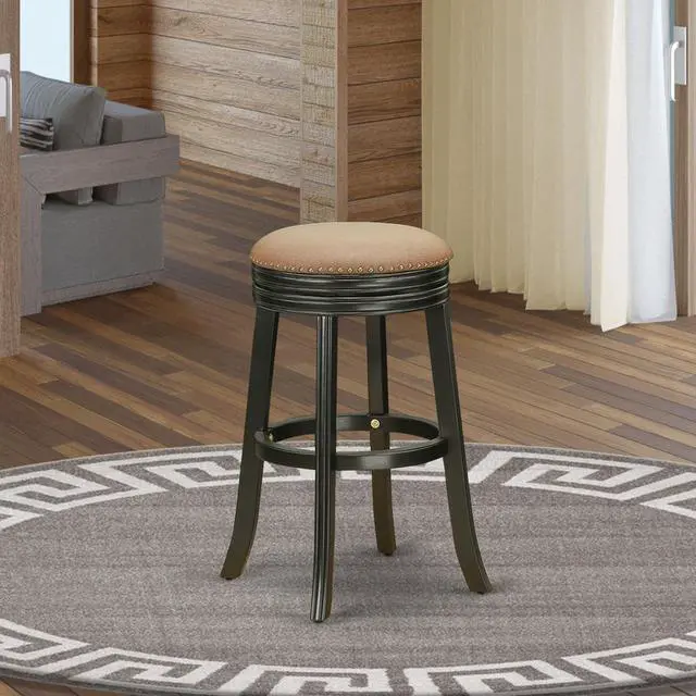 This real wood counter height barstool will likely make a elegant statement in your house when planning to obtain a stylish layout. Beautiful counter-top height barstool is finished in black. Elegant 30-inch kitchen counter height stool is finished in black which also has a natural brown roast finish upholstery seat and high-density foam. The backless stool will not only look impeccable in the dining area, but will be ideal in the pool area or game room. The 360 degree swivel seat allows you to swing around effortlessly. The long lasting solid wood frame is stable. Includes a footrest guarded with a metal kick plate that ensures the durability and sturdiness of this stool. The floor slides help safeguard your floors and ensure smooth gliding. This barstool is adorned with decorative nail trimming on the seat and bowed out legs. This bar stooll will offer comfort along with its attractive style.