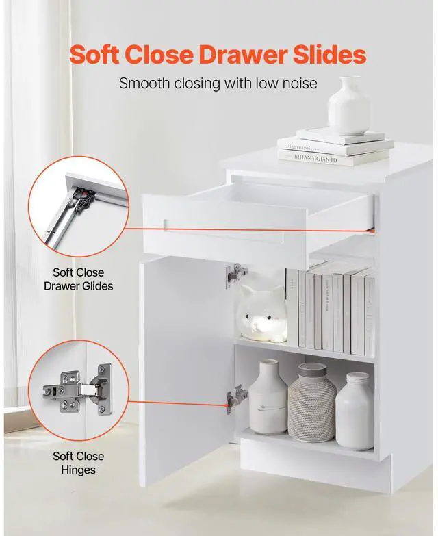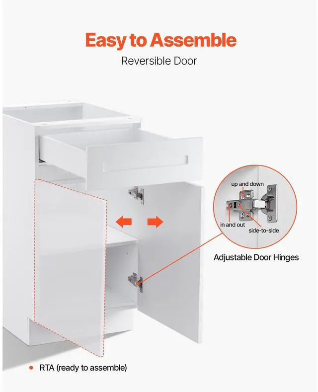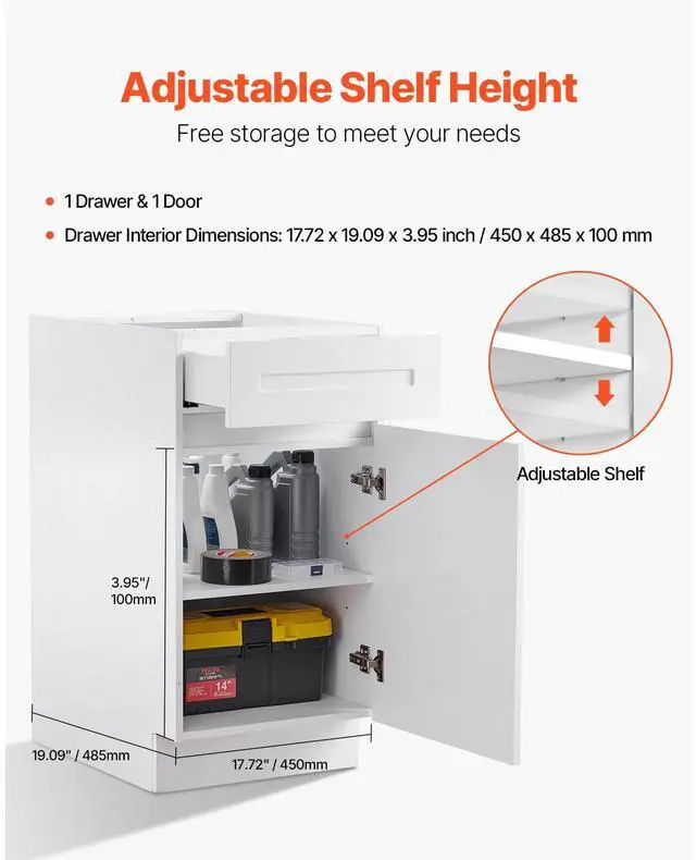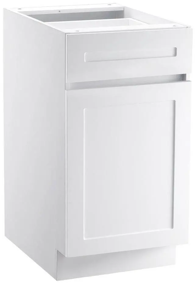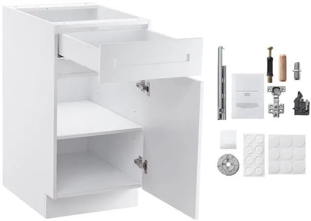 White Shaker Base Cabinet with Drawer, 18-Inch Unassembled Drawer Base Cabinet, 18" W x 24" D x 34.5" H Ready to Assemble Cabinet with Soft-Close Door and Adjustable Shelf, for Home Office