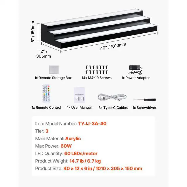 Product Size: 40 x 12 x 6 in / 1010 x 305 x 150 mm