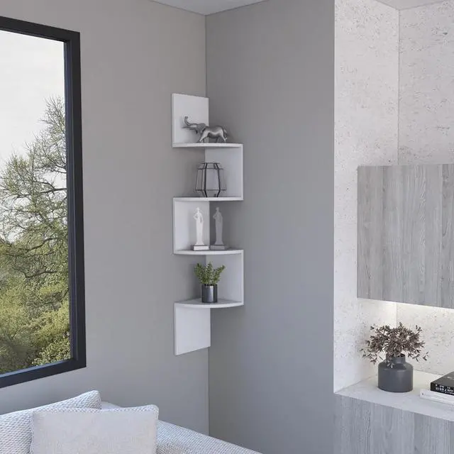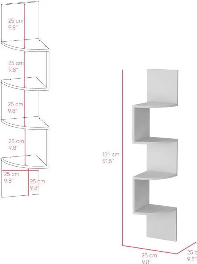 "The ""Shelf Crestone"" is a chic, space-efficient addition to your living room. Its striking white finish and four open shelves ( 9.8 ""W x 19.8 ""H each) offer a stylish way to display books, decor, or plants. This shelve is designed for wall mounting and maximizes space while enhancing your room's modern aesthetic.