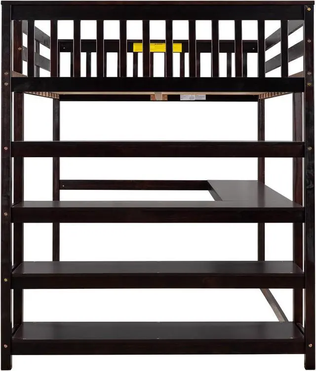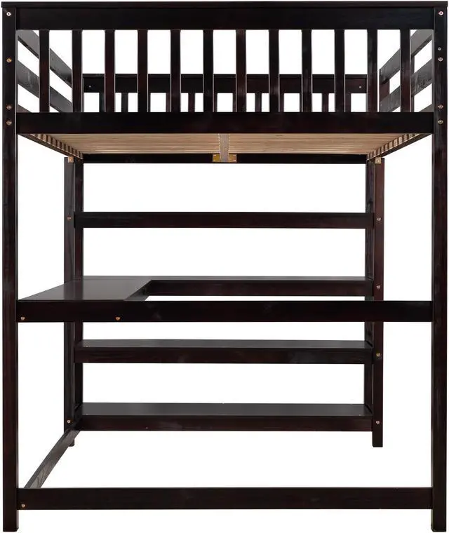 With workstation: comes with a desk and shelves underneath. Sturdy and durable: made of solid wood and MDF, the bed can stand the test of time. Space-saving: loft design opens up floor space for work.