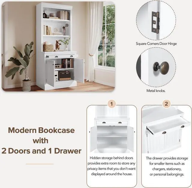This bookcase is made of a solid wood frame and thickened MDF board, which ensures the whole wooden bookshelf is robust, stable, and durable.
