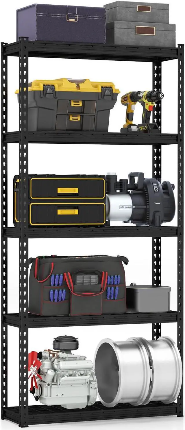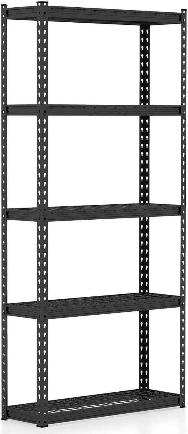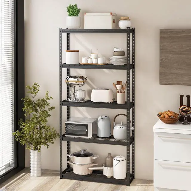 Premium Material: Crafted from high-quality powder coated metal, this 5-tier storage shelf guarantees durability and reliability for long-term use. Additionally, the powder-coated surface not only adds resistant to water and rust but also extend the lifespan of the standing shelf unit.