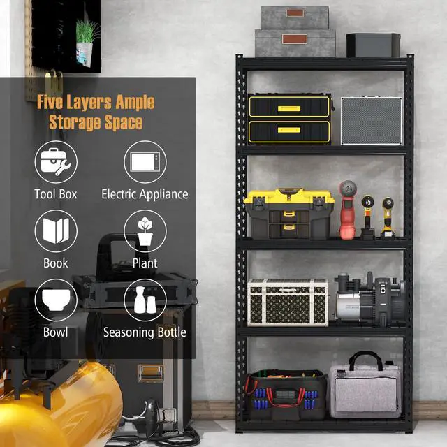 Five-Tiered Storage Solution: Designed with four/five layers ample storage space, this standing shelf unit offers ample room to accommodate a wide range of items such as tool boxes, electric appliances, books, plants ,bowls, seasoning bottles. Moreover, the versatile shelving unit with its ideal dimensions is suitable for various locations such as kitchen, living room or garage.