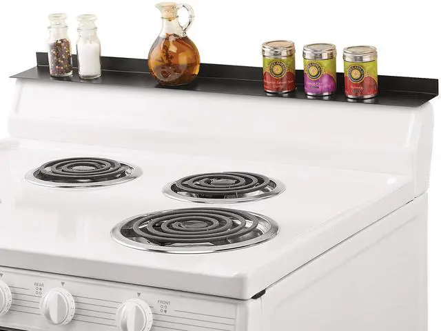 • Available in three colors to fit any dcor, the shelf is magnetic on the bottom to stay in place on stovetops