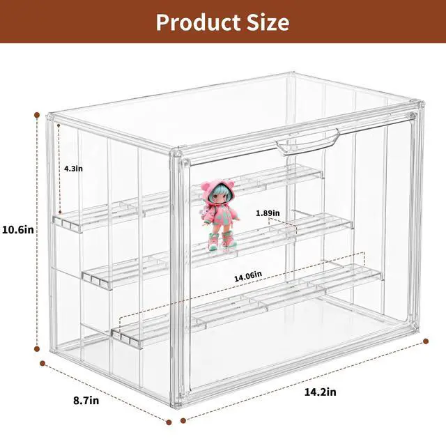 Flexible Storage Options: 3 Removable Shelves for Small Size, 2 Shelves for Medium Size, and No Shelves for Large Size figures