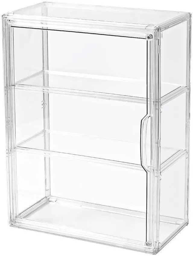 3 Tier Display Case for Collectibles, Clear Display Box with 2 Movable Plates, Storage Container with Magnetic Door (Large 1 Pack)
