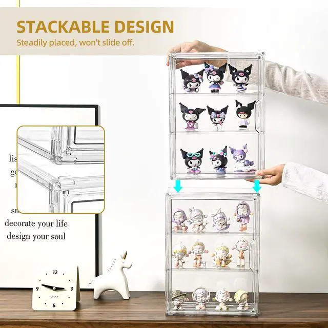 Stackable and Space-saving: This figurine box features a card slot design, making it easy to stack and keep your collection stable and organized
