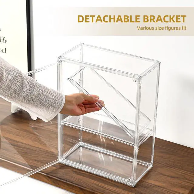 Magnetic Door:This organizer box adopts a magnetic door design, which can be opened and closed conveniently. It can effectively prevent dust and ensure the cleanliness and tidiness of the collectibles