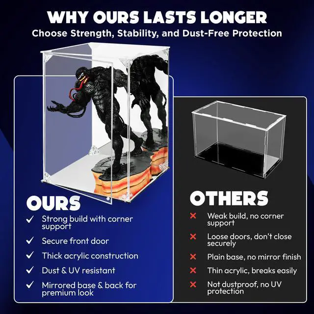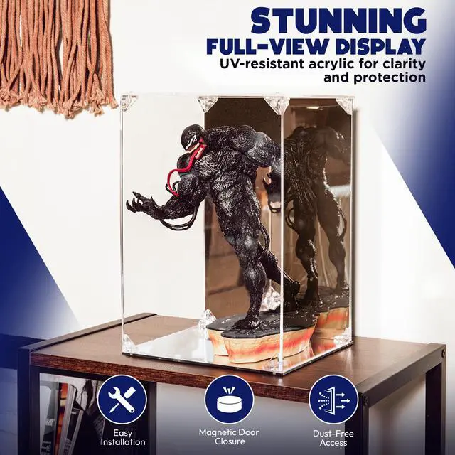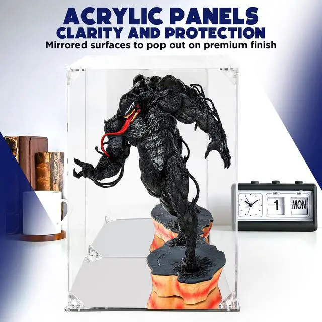 Collectors seeking a pristine environment for prized possessions will find this 8x8x12 inch display case essential for maintaining the condition of their items. This doll display box provides a crystal-clear view while blocking harmful dust and UV rays that cause fading over time. The integrated display case with mirrored back and base reflects every intricate angle of a figure or model, making it an ideal choice for a marvel figure display case or a detailed lego set display case. The 8x8x12 acrylic enclosure offers generous vertical space, functioning much like a high-end glass display case with base but providing the shatter-resistant safety and lightweight durability of thickened acrylic panels. Enthusiasts of iconic building sets can utilize this versatile unit as a lego architecture display case or a clear display case for lego star wars or harry potter sets. The magnetic door allows for frequent access without the risk of weakening the structure, making it a reliable display case for figure collectors who wish to rotate their exhibits. The sturdy construction ensures long-term stability for all kinds of hobby collectibles. Once the protective film is removed from the panels, the high-transparency material has crystal clear clarity. Whether utilized for a sports memoribilia display case, a figure display case or a doll display box, the unit highlights the finest details of any treasure.