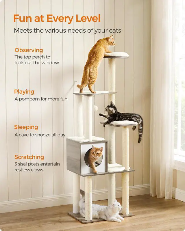 | Model Name | WoodyWonders Cat Tree, 65-Inch Modern Cat Tower for Indoor Cats, Multi-Level Cat Condo with 5 Scratching Posts |