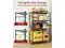 3. This standing shelf has adjustable leveling feet for stability on uneven floors. Shelves connect securely with screws, and the included wall anchor kit prevents tipping. Assembly is quick and easy with the included instructions and tools.