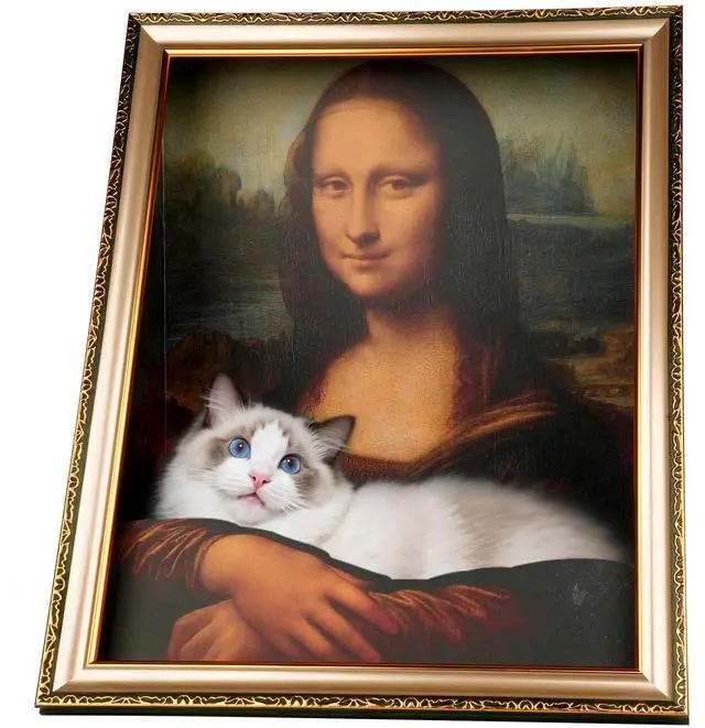 Why Choose Oxfraki Monalisa Cat Bed? Elevate your cat's space with our 3-in-1 Monalisa Cat Bed. Combining a cozy bed, durable scratcher, and stylish art piece, its designed for both comfort and décor. With a pre-assembled, screw-secured frame, setup is easyno glue, no mess. Made from eco-friendly cardboard. The perfect gift for cat lovers, offering a vibrant 3D art design that enhances any home. Package Contents Background Image Front Panel Image Cardboard Cat Scratcher Photo Frame 2-sided Tape Assembly Instructions 1.Fold along the creases as shown. 2.Apply double-sided tape and peel off backing. 3.Fold and secure both sides inward. 4.Flip and press firmly. 5.Fold "flaps" inward and secure with tape. 6.Place the background (no tape needed). 7.Place the scratcher sideways with the groove inward. 8.Apply double-sided tape to the front panel. 9.Stick the background to the base. 10.Peel off the frame backing. 11.Align corners and press for 10 seconds. 12.Your cat scratcher is ready!