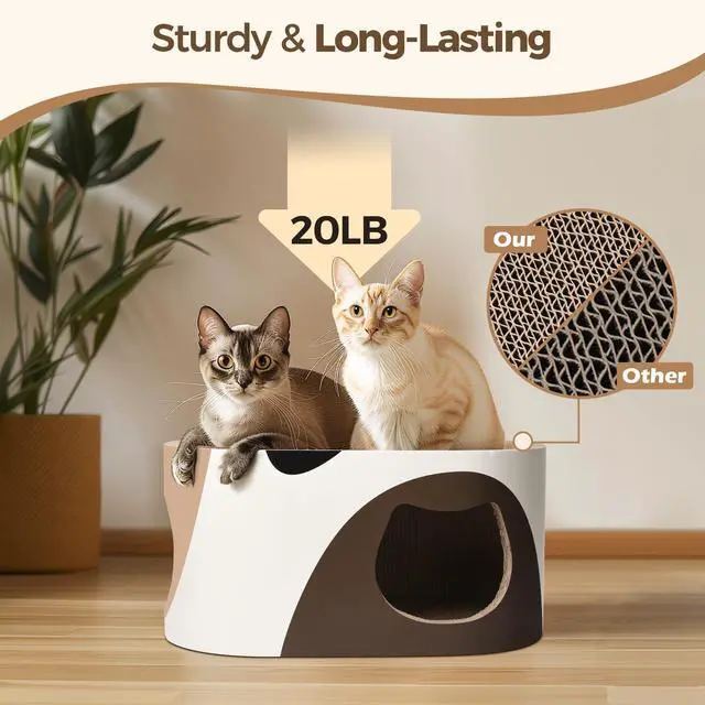 MSBC Modern Cat Scratcher Lounge for Furniture Protection Product Specifications: - Material: Corrugated Cardboard - Dimension: Product size: 23 x 10 x 10 inches/58 x 25.4 x 25.4cm (L x W x H). - Package Include: 1 x Cat Scratcher Product Features: Cats Love It: This scratcher perfectly satisfies cats' natural instincts, scratching, playing, and lounging around, and the curved shape creates a cozy place for them to rest, improving your feline pets overall health and mood. Promote Healthy Claws: Scratching as a form of cats to play and exercise, sharpen their claws and relieve stress. The large surface offers kitties plenty of place to do them all. Lounge and Scratcher:2 in 1 Cat Scratcher doubles as a cat scratcher and a lounge. Cat nest above satisfies cats' habit of falling asleep and the two holes below make it a good place for your kitty to chase and play. Notice: Better for indoor use! Please keep the scratcher dry to avoid moisture softened corrugated paper. Please maintain a certain distance with high temperature source(such as heating, stoves, etc.)