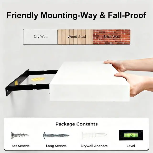 | Special Feature | Floating Shelves for Wall,Invisible&Sturdy Metal Brackets,Large Storage Shelves,Wall Mounted Shelves |