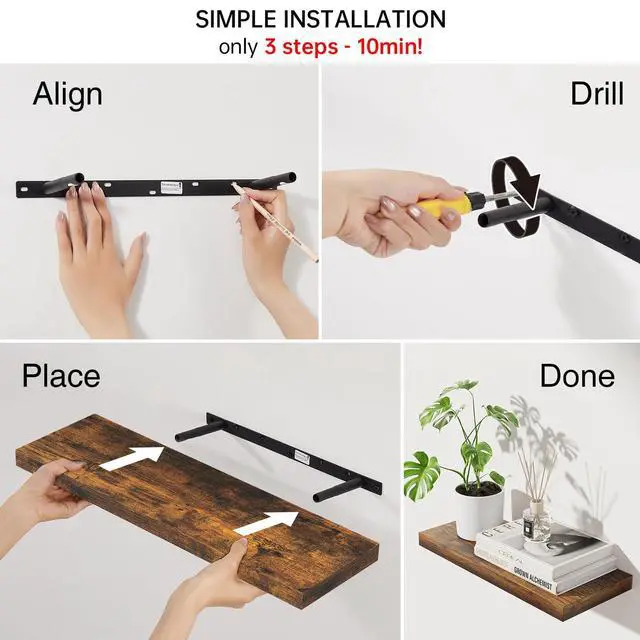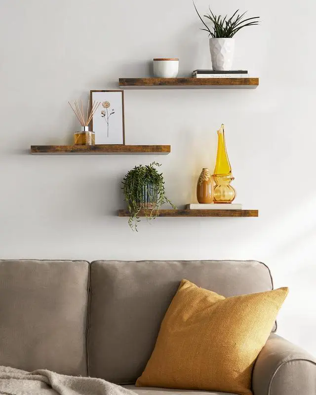 Modern & Minimalist Style Featuring clean lines and a rustic finish, these wall-mounted shelves add a modern touch to any room, from cozy bedrooms to contemporary living spaces