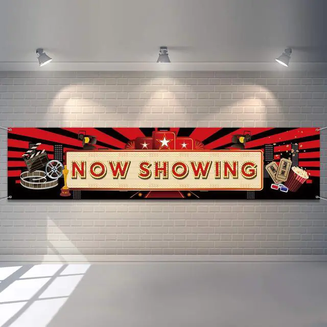 Movie Night Party Decorations 2025 Now Showing Banner 70.8 x 15.7 Inch Red Carpet Backdrop Decorations Movie Backdrop Birthday Party Banner Baby Shower Birthday Supplies