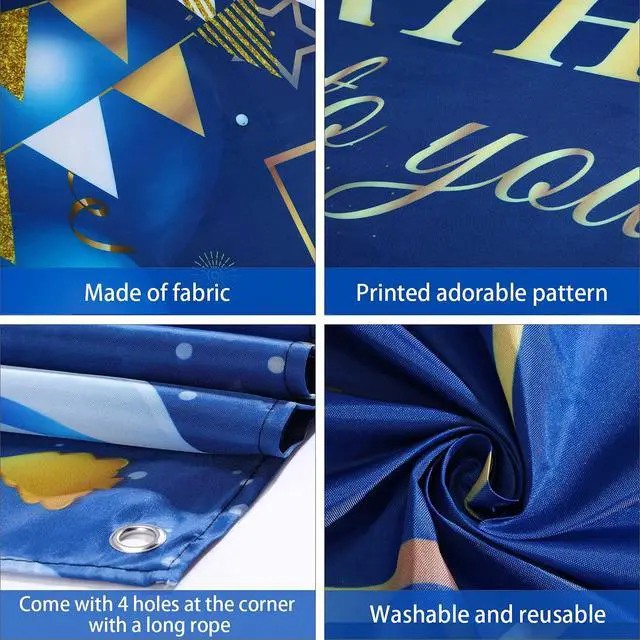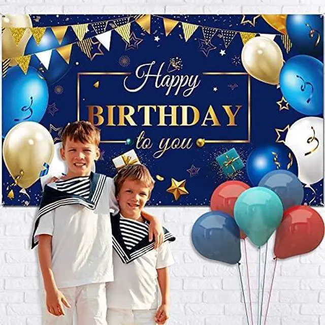 Happy Birthday Backdrop Banner for Men, Navy Blue and Gold Birthday Decorations, Photo Backdrop Background Party Favor Celebration Supplies, 72.8 x 43.3 Inch
