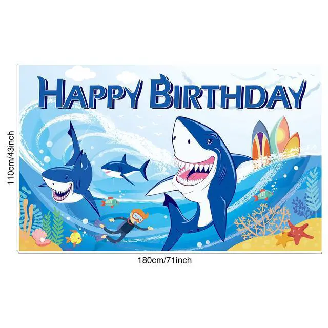 Little Shark Birthday Decoration - This blue shark birthday background is perfect for kids (especially boys) for a seaside themed birthday party or beach birthday party decorations. It is also suitable for interior decoration, such as childrens bathroom decoration. It will make your birthday party more enjoyable and bring a pleasant decoration to your house.