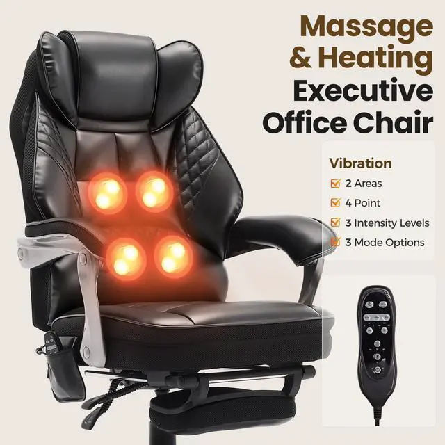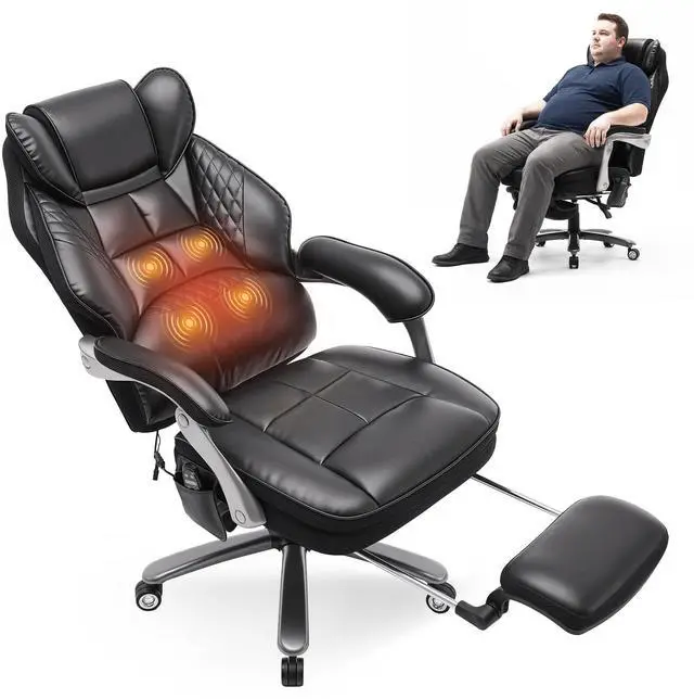 500LBS Massage Office Chair with Foot Rest, 3D3D Kneading Massage Home Office Desk Chairs, 22.83 Wide Big and Tall Office Chair for Heavy People, Ergonomic Reclining Gaming Chairs, Black