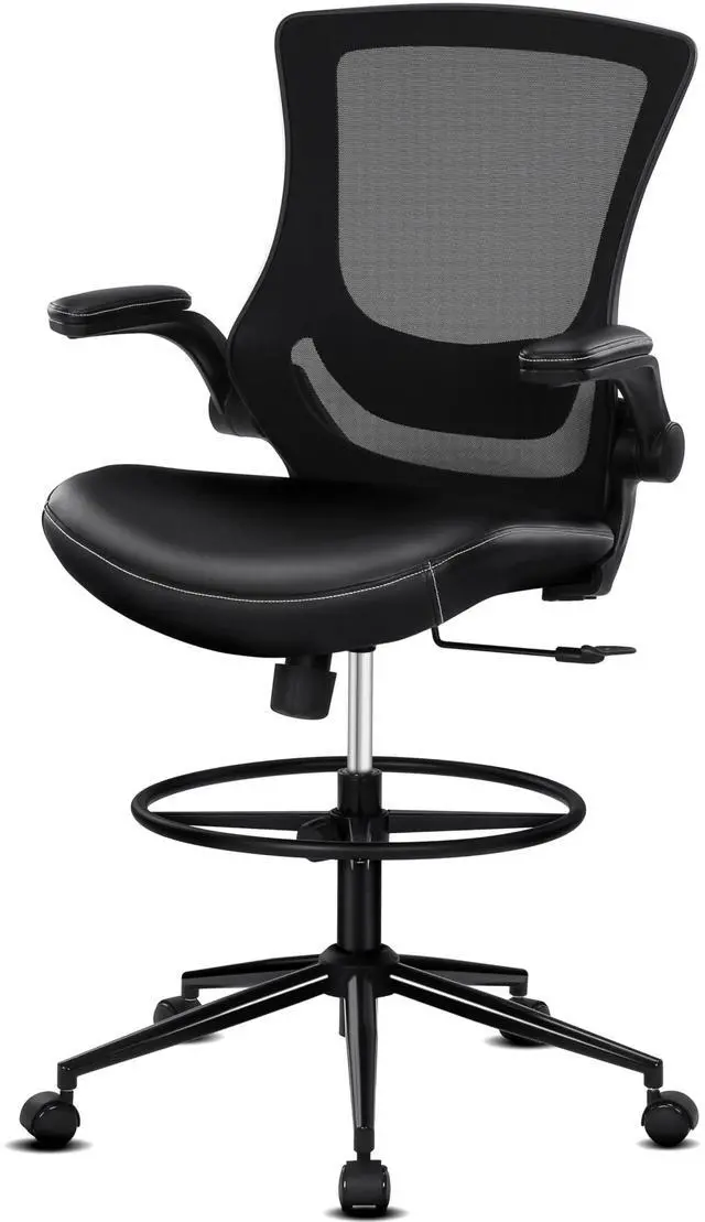 Misolant Tall Office Chair for Standing Desk, Drafting Chair with Footrest Ring, PU Leather Recline High Office Tall Desk Chair with Adjustable Lumbar Support