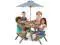 [Large & Adjustable Umbrella]: Featuring a convenient latch, the umbrella diameter can be easily adjusted (50"/51"). The large umbrella is made with wear-resistant polyester fabric, and supported by a solid wood pole and 6-rib structure, protecting kids from harsh sunlight. It can be removed when the childs picnic table is used indoors.