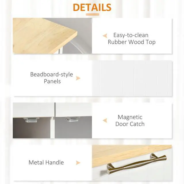 - - Solid rubberwood tabletop and MDF panels ensure stability and easy cleaning.