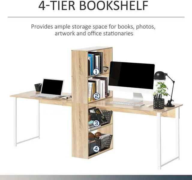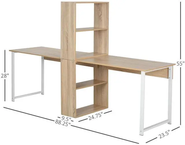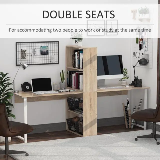 The Aosom 2 person desk with storage is designed to be a stunning focal point in your contemporary home, office, or study. With two different work areas, our home desk can accommodate two people to work or study at the same time. There is also a bookshelf in the middle to keep your stationery or any personal belongings. Add our double-sided desk to your working space and live more efficiently.