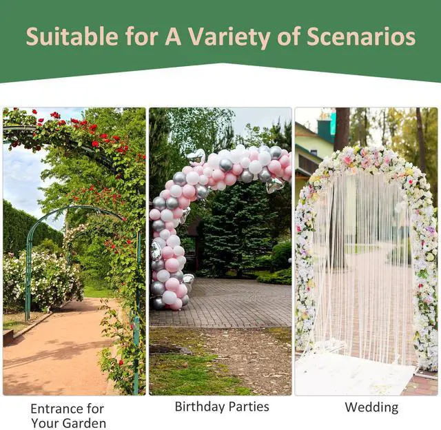 - - Arch of the outdoor arbor can be decorated with vibrant flowers, balloons, foliage, lights or anything else