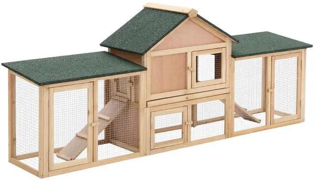 - - The rabbit hutch includes a raised perch to keep your small animals safe, cool on sunny days and dry on rainy days