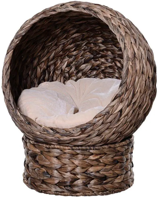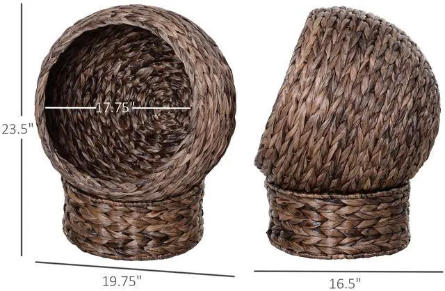 Aosom offers an inviting nap spot that merges an elevated space with a hidden feel to create an extra cozy design. Reset the rotating ball to two different positions to please your cat's preference. The thick bed, soft fabric, and nice-to-the-touch mat grass structure make for an all-around quality design to create a nap heaven. A charming basket-weave style will blend well with any living area, be it boho, modern, farmhouse, or eclectic.